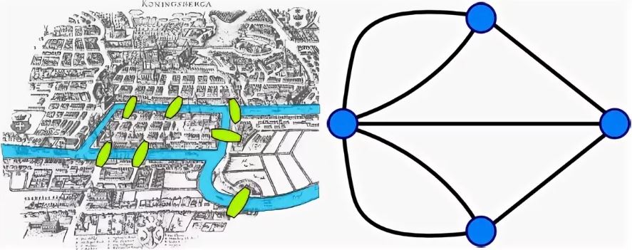 Граф кёнигсбергских мостов имел четыре нечётные вершины (то есть все) — следовательно, невозможно пройти по всем мостам, не проходя ни по одному из них дважды.