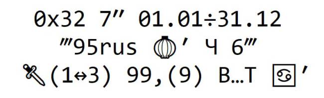 Так вот, вместо тысяч и миллионов «перемноженных» значков достаточно оставить только основные символы и возможные к ним «модификаторы» цвета и положения. Например: ^ – верхнее положение, _ – нижнее, цвета: 🔴🟠🟡🟢🔵🟣🟤⚫⚪. И получится, что набором из 13 символов мы сможем закодировать вообще любую комбинацию. 13 значков вместо миллионов.