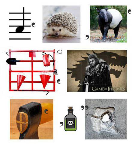 - Нота ля, ёж, тапир, пожарный щит, Нед Старк, обух, яд, брешь