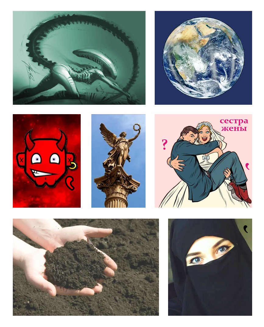 - НЕ(о) + БЕС + НЫ(т) + Е + ЖЁНЫ + (п)ЛУГ + (ок)ОВЫ + Х(о)МА + РИ(с) = Небесные жёны луговых мари
